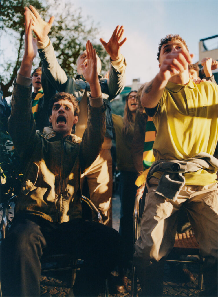 È uno spazio condiviso che attraversa le generazioni, unite da una passione comune. L’emozione scorre tra luoghi diversi – la casa, il bar, lo stadio – dove vite lontane tra loro convergono attorno alla stessa esperienza collettiva. Lo sport continua negli sguardi, negli atteggiamenti e in un’estetica che diventa linguaggio riconoscibile.
