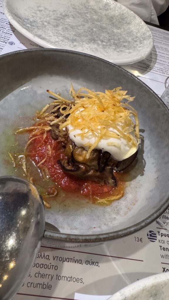 Un indirizzo che conquista subito, nel cuore di Plaka. L’atmosfera è calda, mediterranea, con un tocco autentico che racconta Atene senza cliché. La cucina è sorprendentemente raffinata: sapori puliti, materie prime eccellenti e una cura particolare nell’equilibrio dei piatti. Servizio gentile, attento e davvero piacevole. Un posto che unisce tradizione e contemporary vibes, perfetto sia per un pranzo lento che per una cena dall’anima greca.