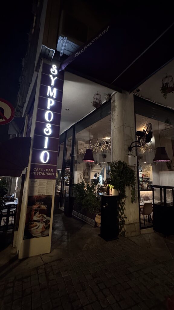 Un ristorante che incarna perfettamente la nuova scena gastronomica ateniese: creativa, elegante e profondamente legata alle sue radici. Symposio Resto Bar accoglie con un’atmosfera calda e contemporanea, luci soffuse, dettagli curati e un servizio giovane, attento, sorridente — quel tipo di accoglienza che ti fa sentire subito nel posto giusto.