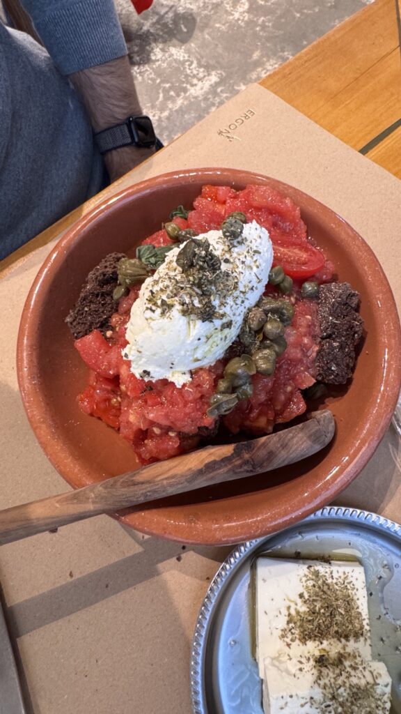 In questi giorni ad Atene ho assaggiato, sperimentato, chiesto, ascoltato. Ho cercato non solo i piatti migliori, ma i luoghi che sanno trasmettere un’anima: quelli dove il pesce arriva all’alba dal Pireo, dove l’olio d’oliva è una religione e dove il design accompagna l’esperienza senza rubare la scena.