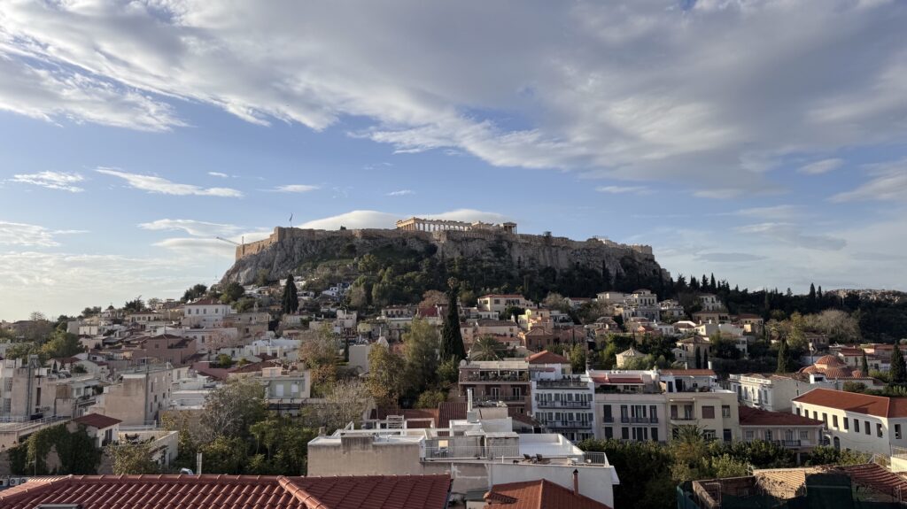 Plaka Hotel, tra Kapnikareas e Mitropoleos, è una scelta solida per chi desidera una vista iconica sull’Acropoli e un buon rapporto qualità-prezzo.