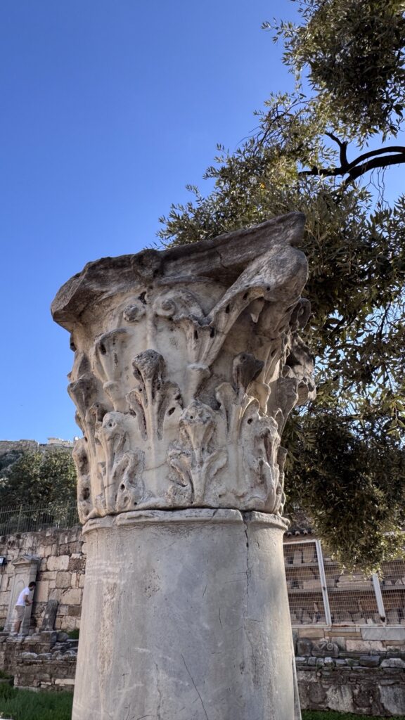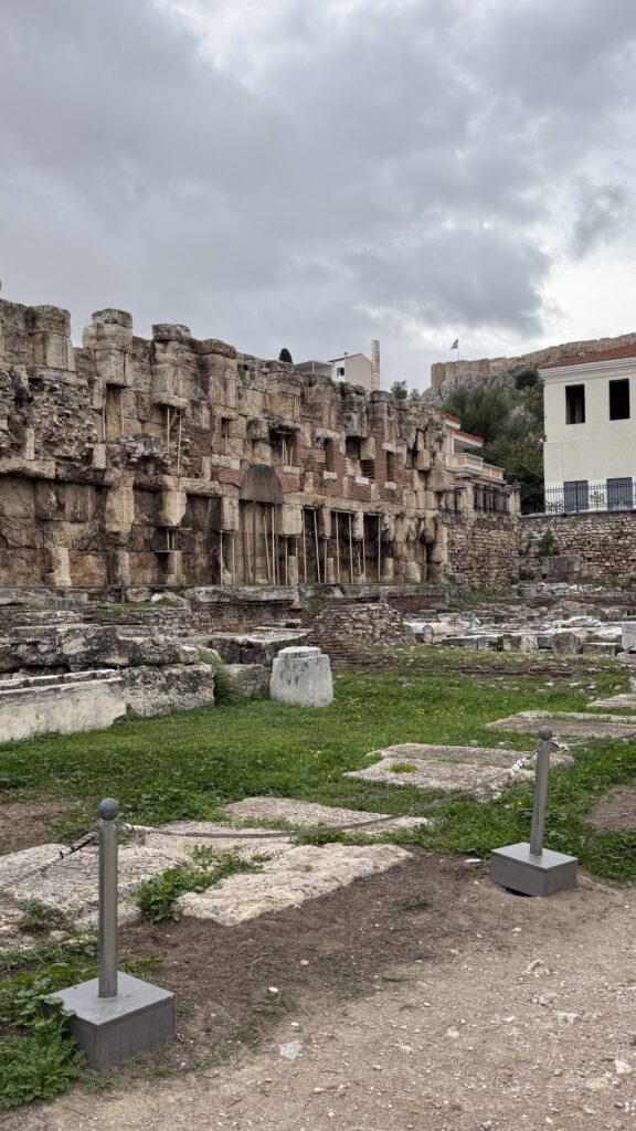 Nel pomeriggio si prosegue verso la Biblioteca di Adriano, costruita nel 132 d.C. dall’imperatore filosofo Adriano. Non era solo una biblioteca, ma un vero centro culturale con cortili, sale di studio e spazi per conferenze. Si trova in Areos 3, nel cuore di Monastiraki.