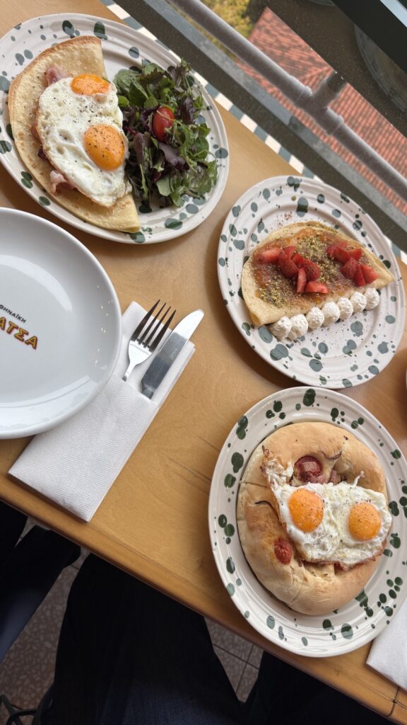 La colazione da 72H Artisanal Bakery, in Markou Mpotsari 1, è un rituale per molti ateniesi. Il pane viene preparato con fermentazioni lunghe fino a 72 ore, che lo rendono leggero e altamente digeribile.