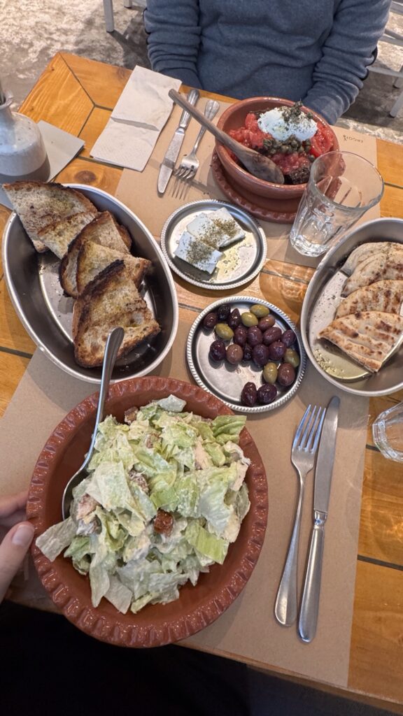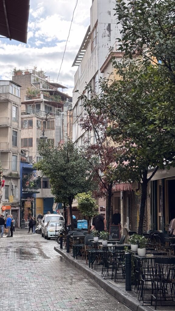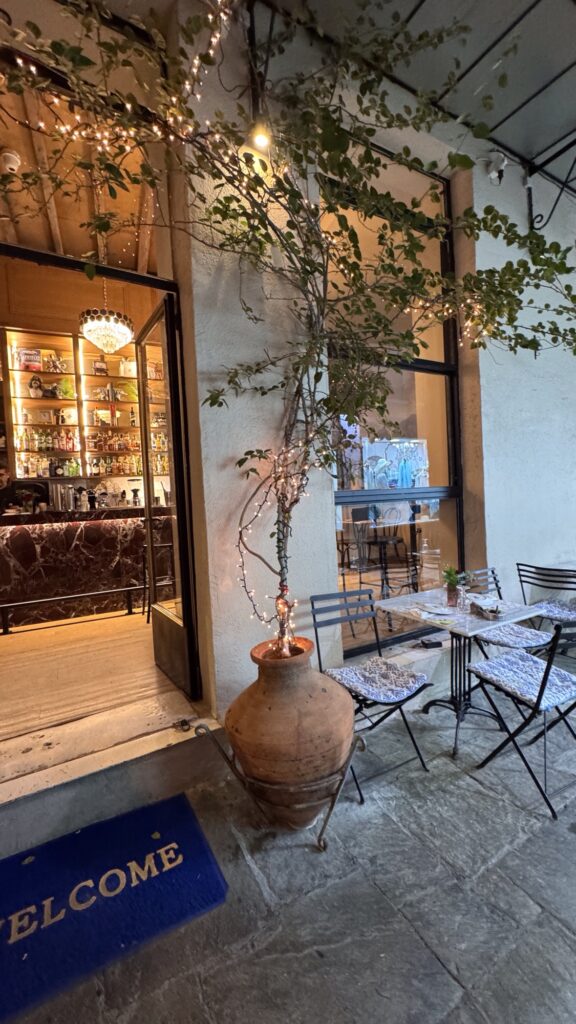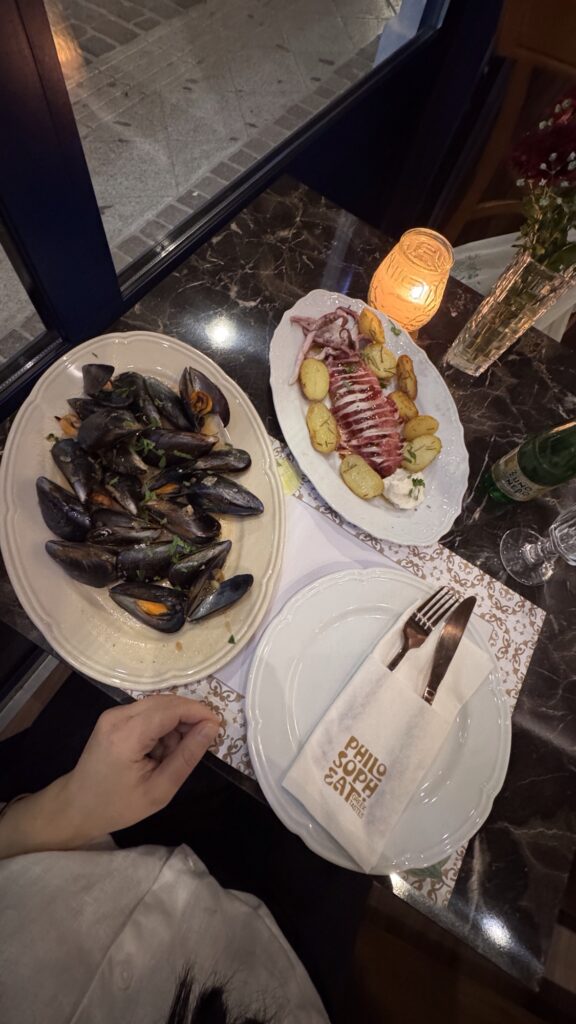 L’ultima sera è dedicata a Philosopheát Wine Restaurant, in Solonos 32. Una vineria contemporanea che valorizza i vini greci naturali e una cucina creativa ma accessibile, perfetta per salutare Atene con calma.