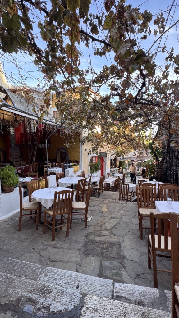 Per il pranzo, una taverna tra Plaka e Kolonaki permette di rimanere in una zona centrale senza rinunciare alla qualità.