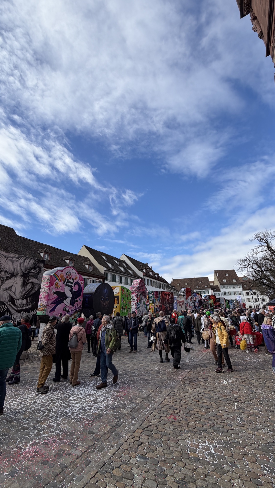 The Basel Carnival is unlike any other European carnival. It follows its own rules, deeply rooted in the city’s history and cultural identity. It is a collective event that involves the whole of Basel and expresses itself through music, imagery, satire, and shared rituals. Everyone is free to experience it in their own way: some move through it in silence, others observe from a distance, while many follow it for hours through narrow streets and squares, guided by the hypnotic sound of piccolos and drums.
