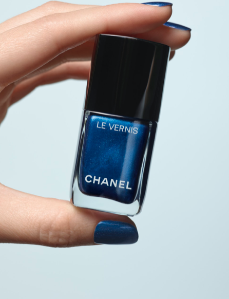 LE VERNIS Légende cattura lo spirito del denim con uno smalto effetto specchio: un blu metallizzato profondo, intenso come un jeans grezzo. Le unghie diventano così un accessorio esclusivo per affermare il proprio stile fin sulla punta delle dita.
