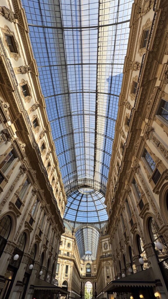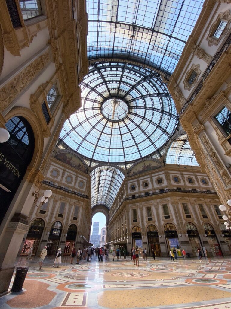 Usciti dal Duomo, una passeggiata nella Galleria Vittorio Emanuele II è d’obbligo. Qui si respira la Milano più iconica, tra architettura ottocentesca e boutique storiche. La tradizione vuole che si faccia un giro su se stessi sul mosaico del toro per augurarsi fortuna.