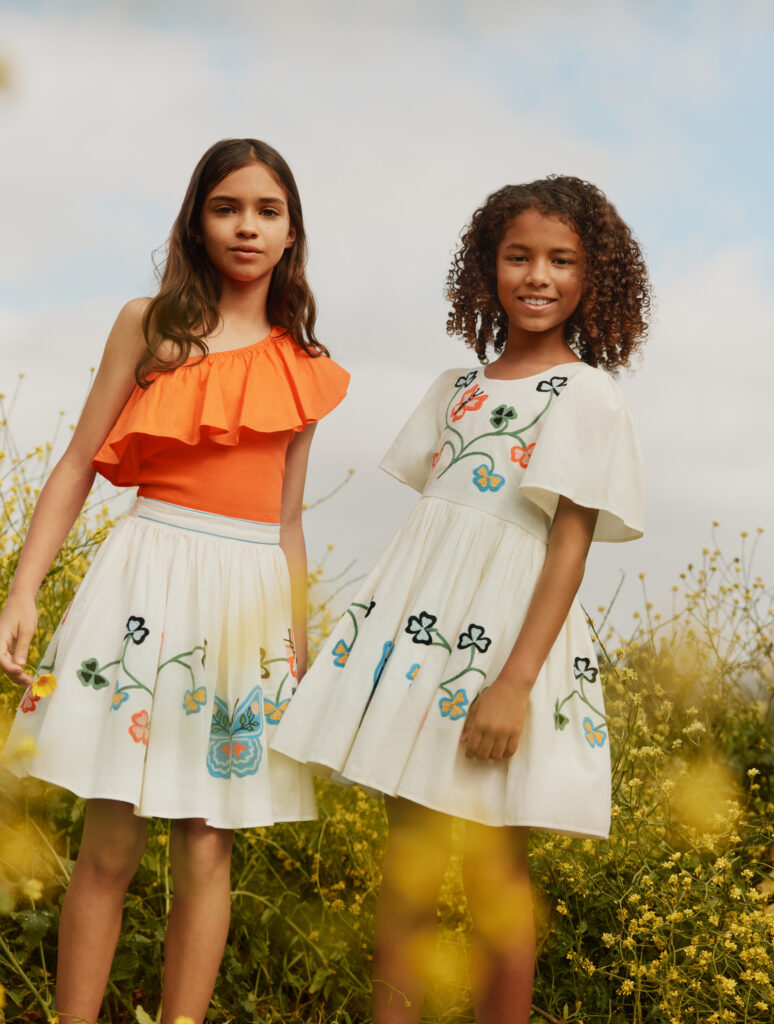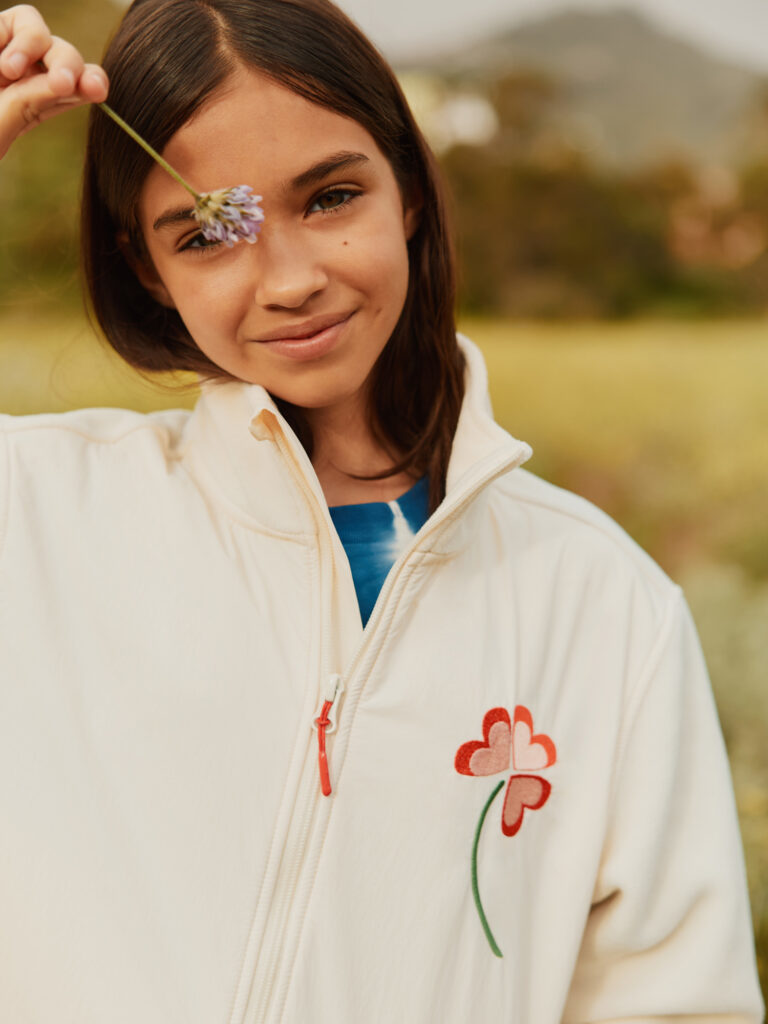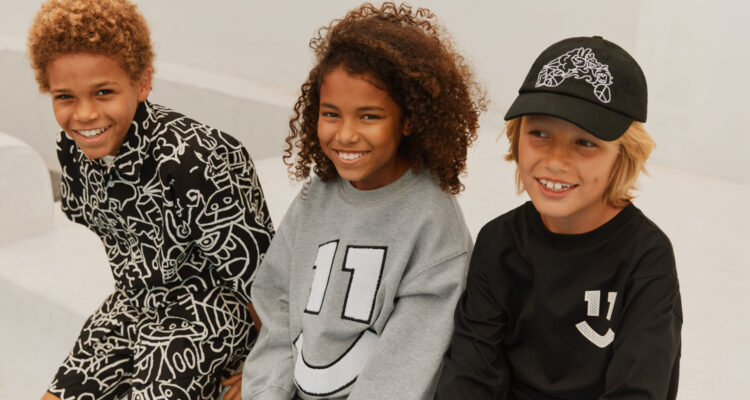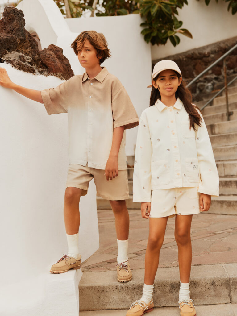 Per la collezione bambina, il mood è festoso e leggero: animaletti giocosi, coriandoli floreali e dettagli allegri danno vita a un immaginario spensierato e positivo. La proposta bambino, invece, si muove nel mondo del basket, con richiami allo streetwear urbano, texture in mesh e stampe ispirate ai graffiti. Le silhouette basketball-driven non restano però confinate alla linea maschile, ma vengono ripensate anche per la bambina, in una chiave fresca, ironica e contemporanea.