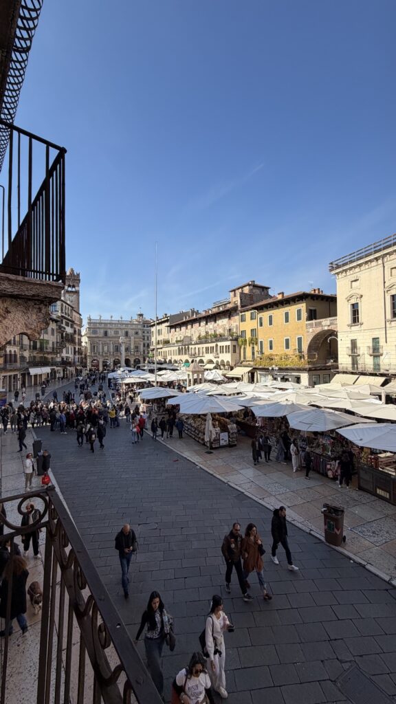 Scegliere un appartamento Domus Verona in Piazza delle Erbe significa posizionarsi esattamente nel punto in cui la città accade. Uscire di casa e trovarsi direttamente nel cuore del centro storico cambia completamente il modo di vivere il weekend.