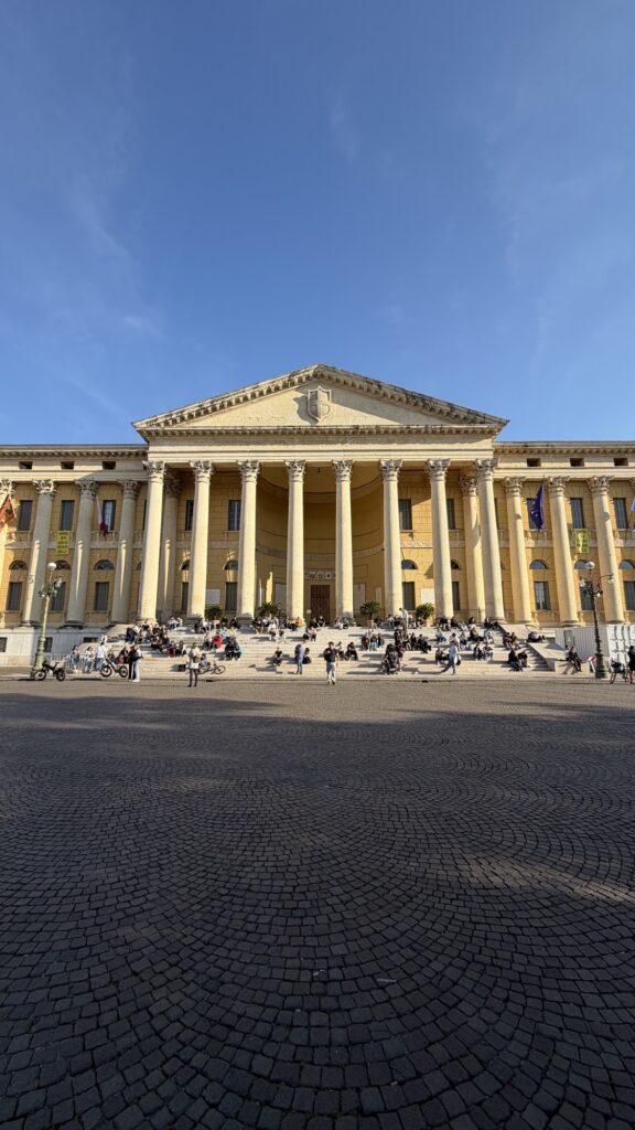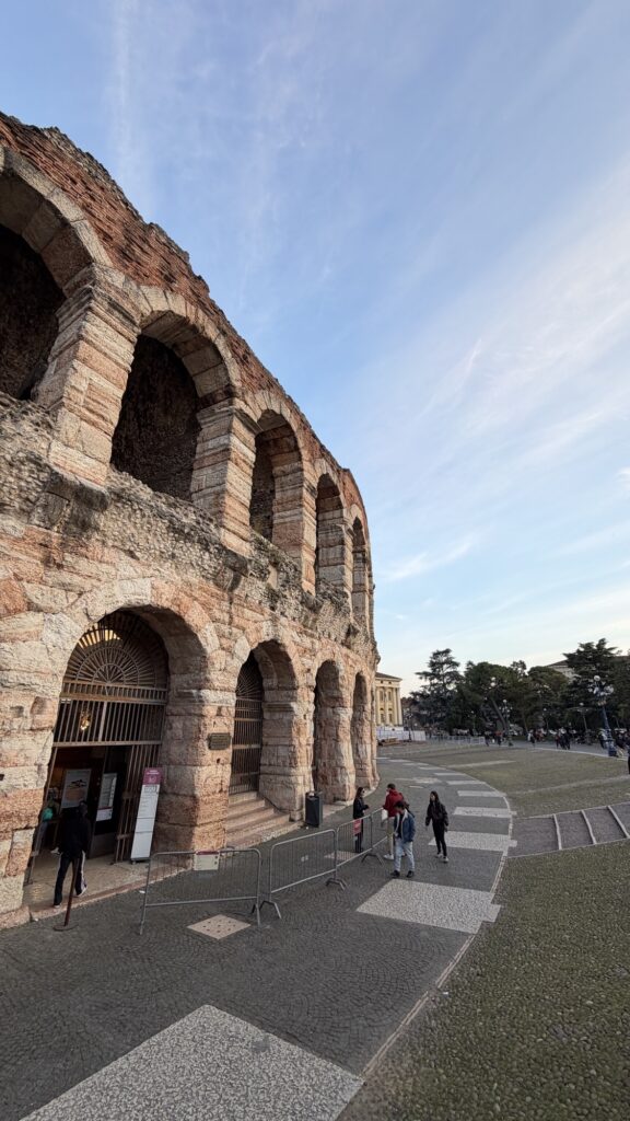 All’esterno, Piazza Bra amplia immediatamente la percezione: è una delle piazze più grandi della città, luminosa e aperta, in netto contrasto con la dimensione più raccolta delle vie del centro.