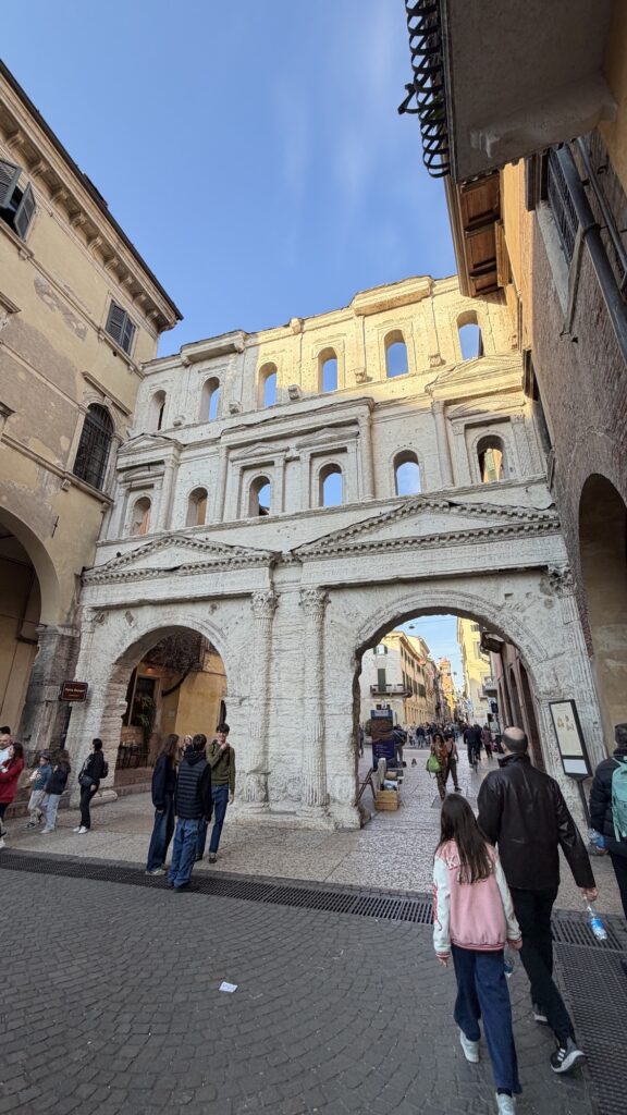 Si arriva quindi a Porta Borsari (Corso Porta Borsari), antica porta romana che segnava l’ingresso alla città. La facciata in pietra e le arcate sono ancora perfettamente leggibili, rendendo questo passaggio uno dei punti più chiari per comprendere l’impianto storico di Verona.