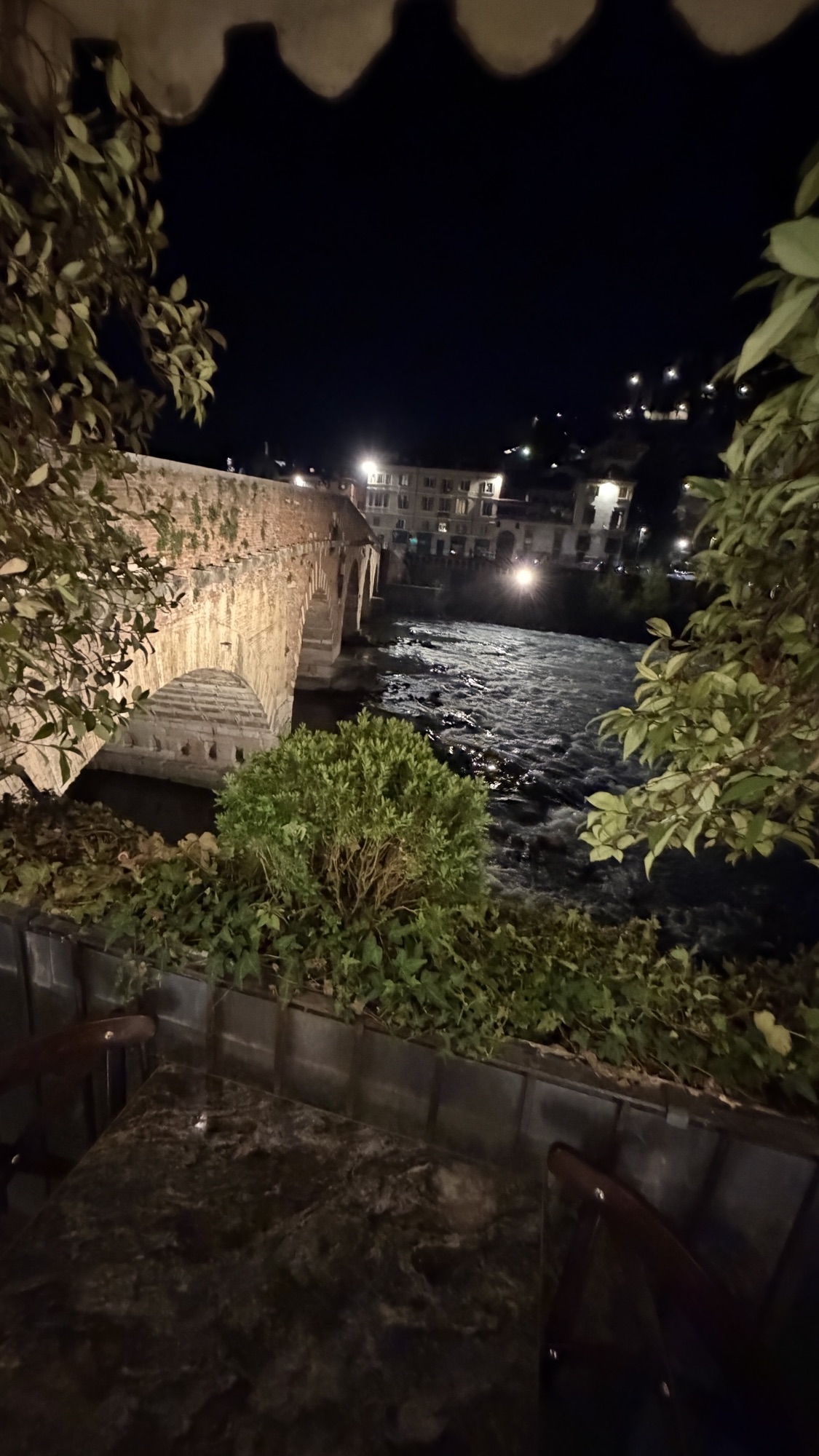 The day ends with dinner at Osteria Ponte Pietra, just steps from the bridge of the same name. It’s one of those places that works perfectly at the end of a day like this: intimate, coherent with its surroundings, and unforced.